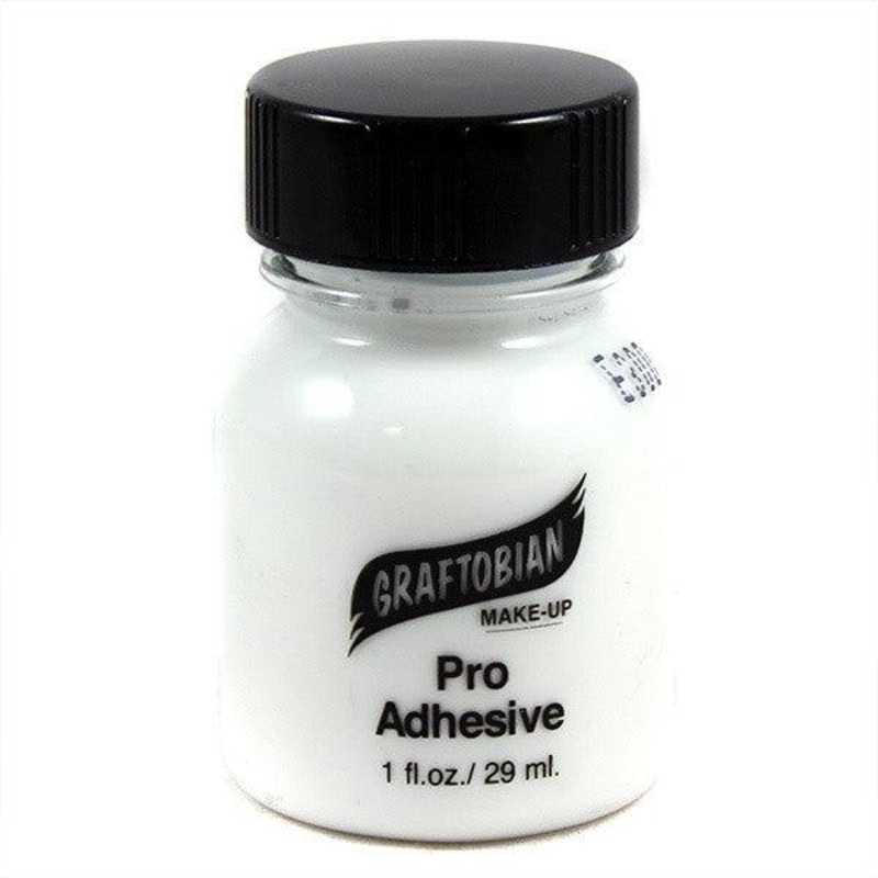 Heavy duty jobs call for Graftobian's Pro Adhesive! Pro Adhesive is a medical grade adhesive that quickly and firmly bonds larger appliances such as masks, horns and sizable foam additions. Bonds within seconds and dries crystal clear. When you need your a