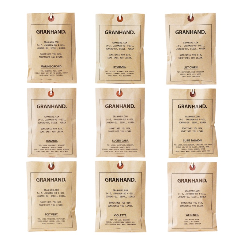 GRANHAND. Sachet 40g (9 Types)DescriptionMarine Orchid.Fragrance Story: Sitting on a surf board, I make waves on the sea with my legs. I see the bottom of the sea through the waves reflecting the sun. I wonder about the deep ocean although I was just in it