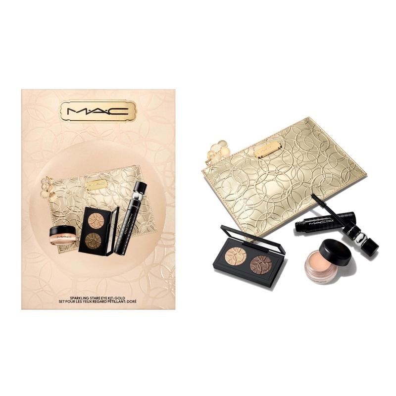 4pc Sparkling Stare Eye KitFull Size ProductsIncludes:a three-piece, holiday-exclusive eye kit featuring a full-sized eye shadow palette with two metallic shadows in all-new gold shades along with a cream eye shadow and a mascara all enclosed in a special-