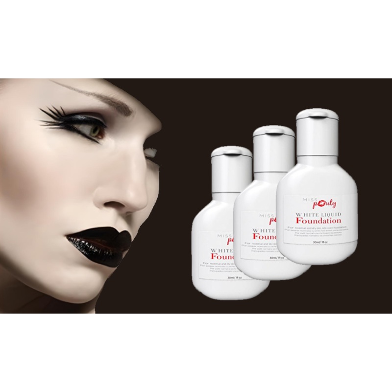 Miss Pouty White Liquid Foundation with Optional Stargazer Black Lipstick Perfect for Everyday Wear, Fancy Dress, and MoreAchieve flawless coverage with the Miss Pouty White Liquid Foundation, designed for normal and dry skin. This rich, lightweight founda