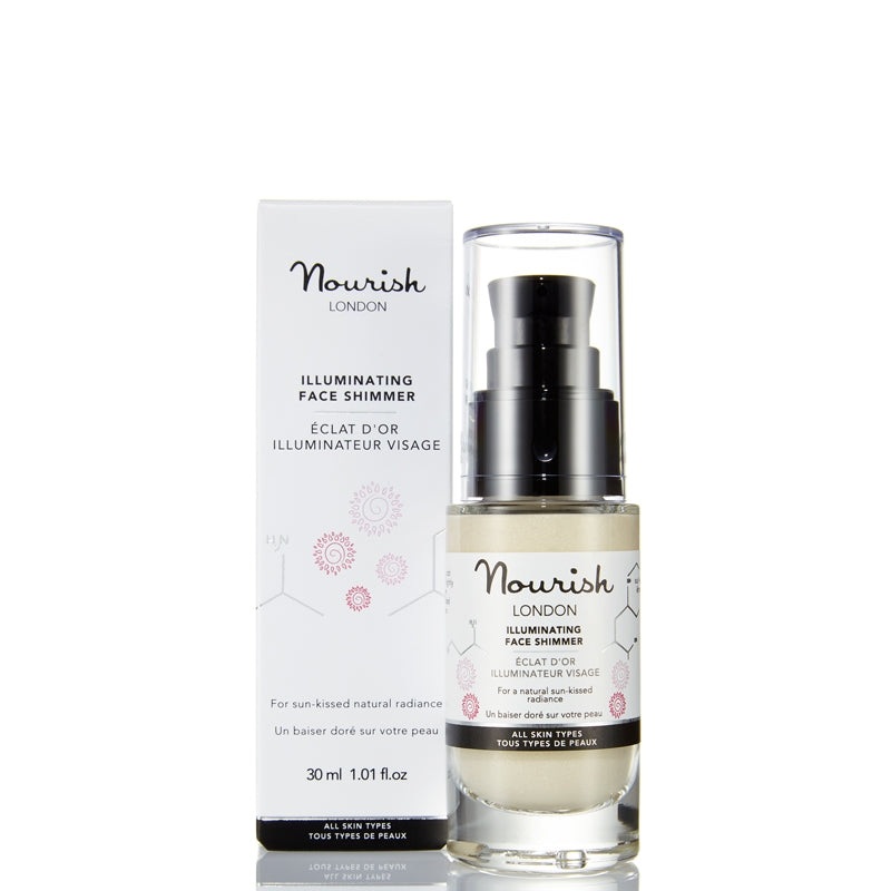 Nourish Illuminating Face Shimmer contains Golden Mineral Powders to lift and define your complexion, and Active Tonka Bean Extract that emits light to give the skin a vibrant, natural, healthy glow, as well as reducing the appearance of uneven skin tone and age spots. Aloe Vera stimulates collagen production resulting in firmer, smoother skin as well as repairing damaged cells. Tripeptides and Hyaluoronic Acid help to reduce wrinkles and fight signs of skin damage from environment and ageing.
