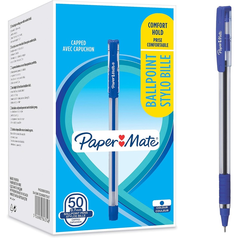 Paper Mate Ballpoint Pens with Comfort Grip, Fine Point (0.7mm) in classic Blue your go-to writing companion for smooth, effortless writing every time.