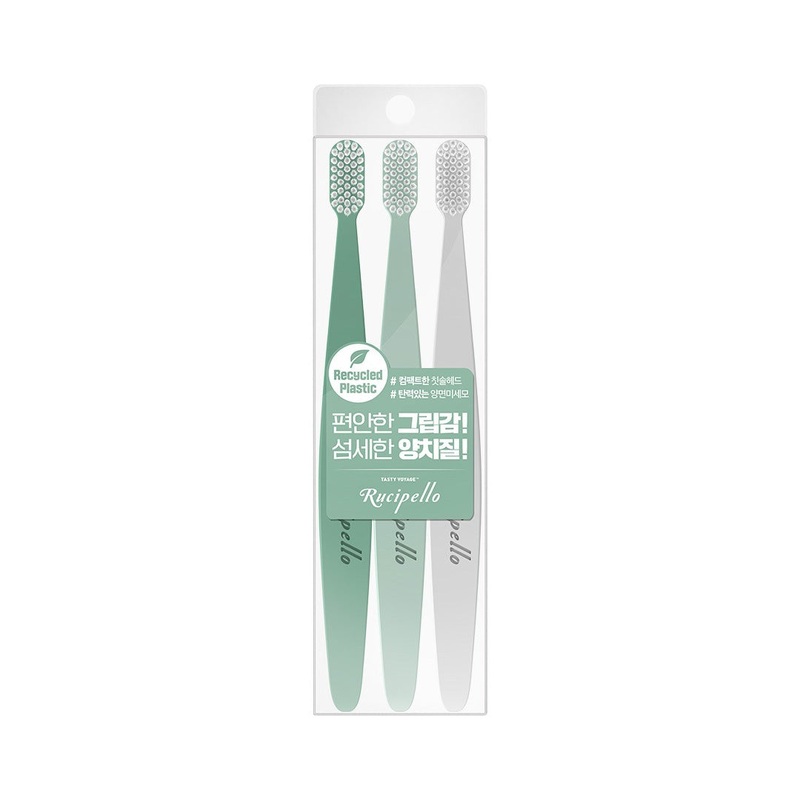 Rucipello Green Wave Toothbrush 3eaDescriptionExperience enhanced fresh breath with the vegan Green Wave Oral Care Collection:Ultra-fine 0.012mm bristles for thorough cleaning- 7 mil resilient bristles for effective brushing- 2.6cm head size for reaching d