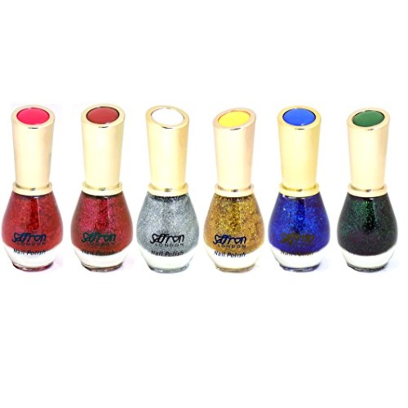 Color: Blue,Gold,Green,Red,SilverFeatures: 6 x Saffron Glitter Nail Polish VarnishDetails: Saffron Glitters Galore Nail Polish - Tray 11 Pack contains: - 61 Red Glitter - 62 Magenta Glitter - 63 Silver Glitter - 64 Gold Glitter - 65 Blue Glitter - 66 Green