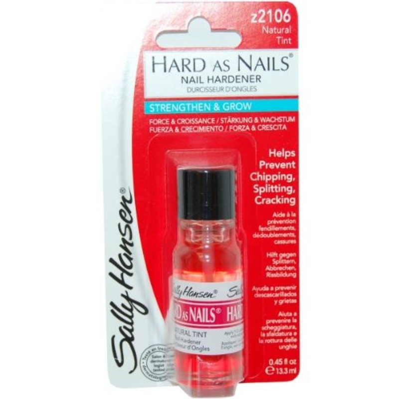 Details: Sally Hansen Hard As Nails Nail Hardener. Gives nails a hard, smooth, chip resistant surface that helps strengthen & support nails. Helps prevent chipping, splitting & cracking. Can be worn alone or as a base coat.UPC: 074170263022EAN: 00741702630