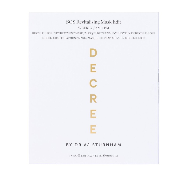 Discover the SOS Revitalising face and eye masks with the Decree Revitalising Mask Edit, our award-winning sheet mask collection which provides the perfect pick me up and recovery when your skin most needs it.
